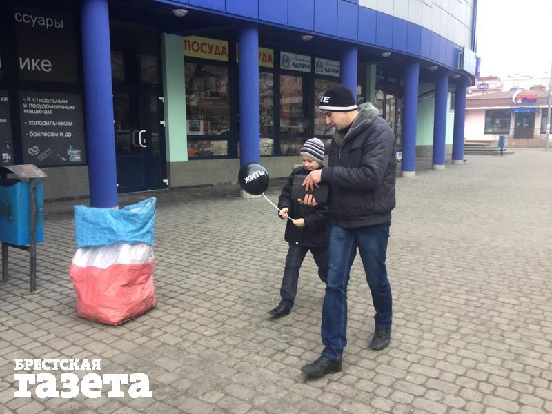 Сегодня утром 31 марта в разных местах в центре Бреста активисты раздали около 150 листовок о вреде свинца и 50 черных воздушных шаров, на которых написано «Жить». Об этом рассказал «БГ» правозащитник Роман Кисляк.