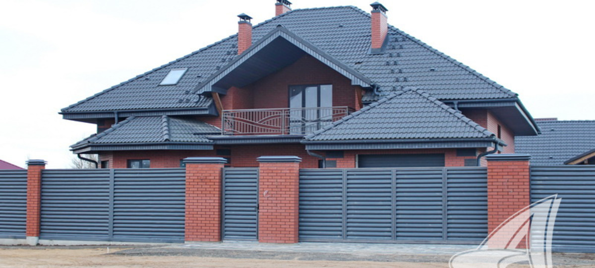 Жилой дом с мансардой 2021 года постройки находится в Жабинке и сразу привлекает внимание своим необычным внешним видом. Некоторую загадочность и даже драматичность зданию придает сочетание черного и темно-красного. Взгляд также задерживается на необычной форме крыши, фактурности кованых ограждений на лоджиях и даже забором в технике жалюзи. Экстерьер дома хочется разглядывать.