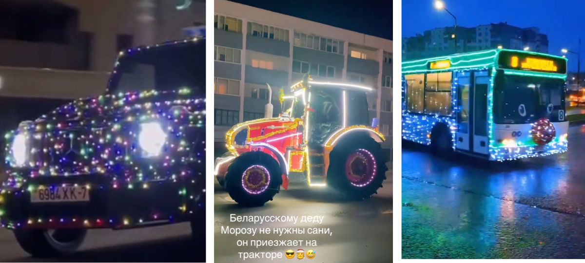Но, пожалуй, больше всего отличился Островец со своим кортежем из тракторов, украшенных разноцветными огнями. Колонна проехалась по улицам города в честь открытия главной новогодней елки. Видео со светящимися тракторами завирусились в TiTok и стали настоящим хитом.