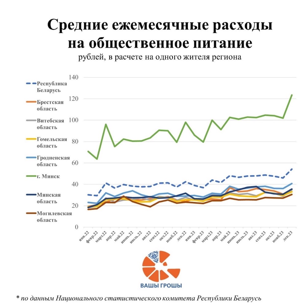 Причину таких трат на кафе и рестораны аналитики видят в высоких заработках в прошлом году и рекордно низкой инфляции. На 2024 год чиновники видят более скромный рост доходов и более ощутимый инфляционный фон. Вероятно, что и рост в общепите будет менее выдающимся на фоне успехов 2023 года, считают авторы проекта «Вашы грошы».