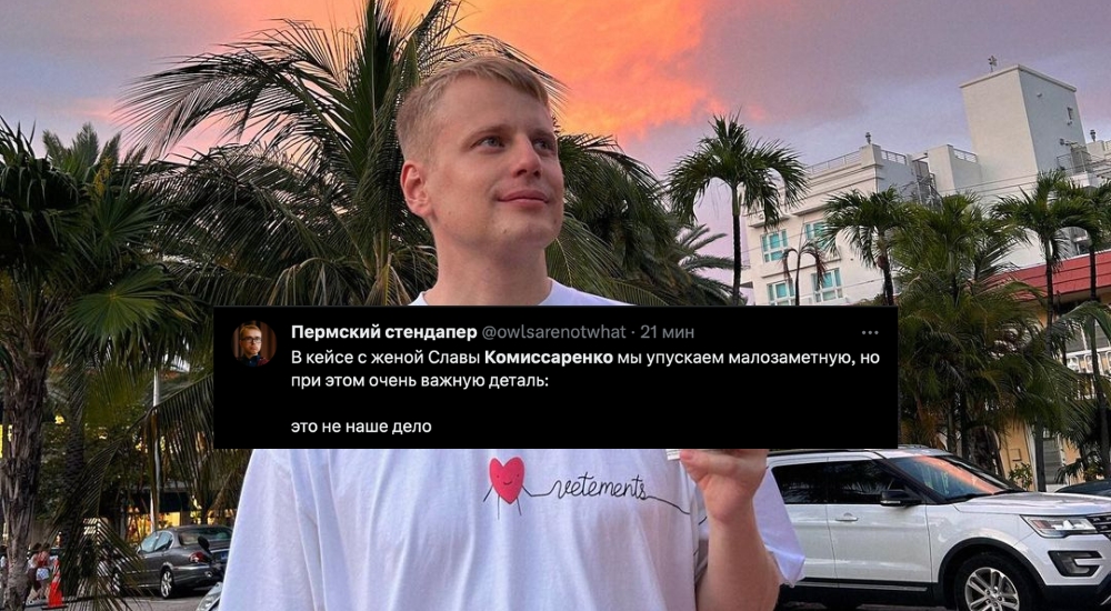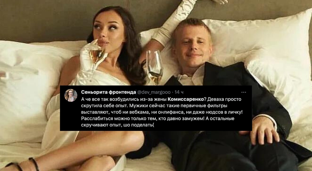 «Меня никто не спрашивает, но я выскажусь про Комисаренко, потому что меня никто не спрашивал хочу ли я быть посвящен в детали их личной жизни. Это все их сугубо личное дело, без нас разберутся. Но раз он/она/они сделали это публичным вывод один – это фейковая свадьба ради хайпа».