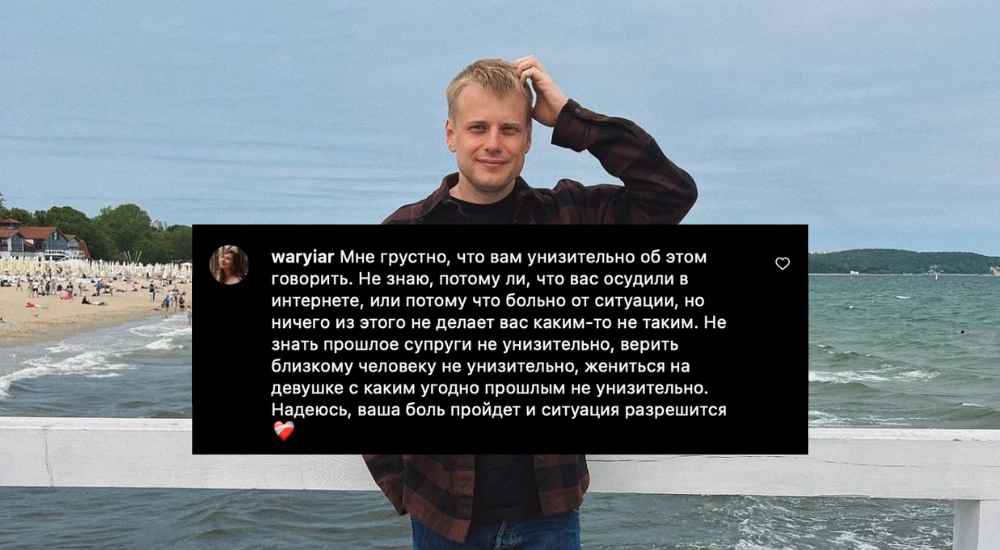 «Мне грустно, что вам унизительно об этом говорить. Не знаю, потому ли, что вас осудили в интернете, или потому что больно от ситуации, но ничего из этого не делает вас каким-то не таким. Не знать прошлое супруги не унизительно, верить близкому человеку не унизительно, жениться на девушке с каким угодно прошлым не унизительно. Надеюсь, ваша боль пройдет, и ситуация разрешится».