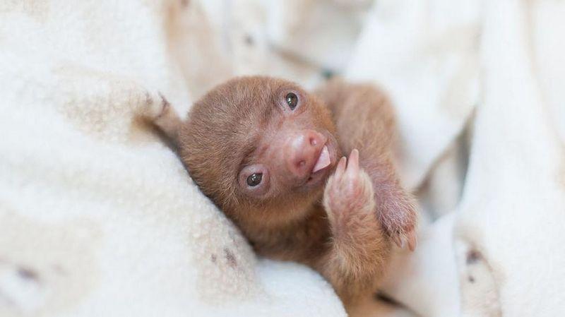 Маленький ленивец рождается уже покрытый шерстью с полным набором когтей и навыками цепляться — для начала за шерсть мамы. Кормит самка малыша примерно 4-5 недель.