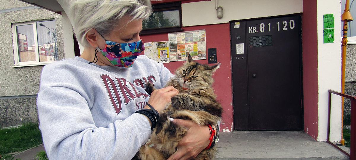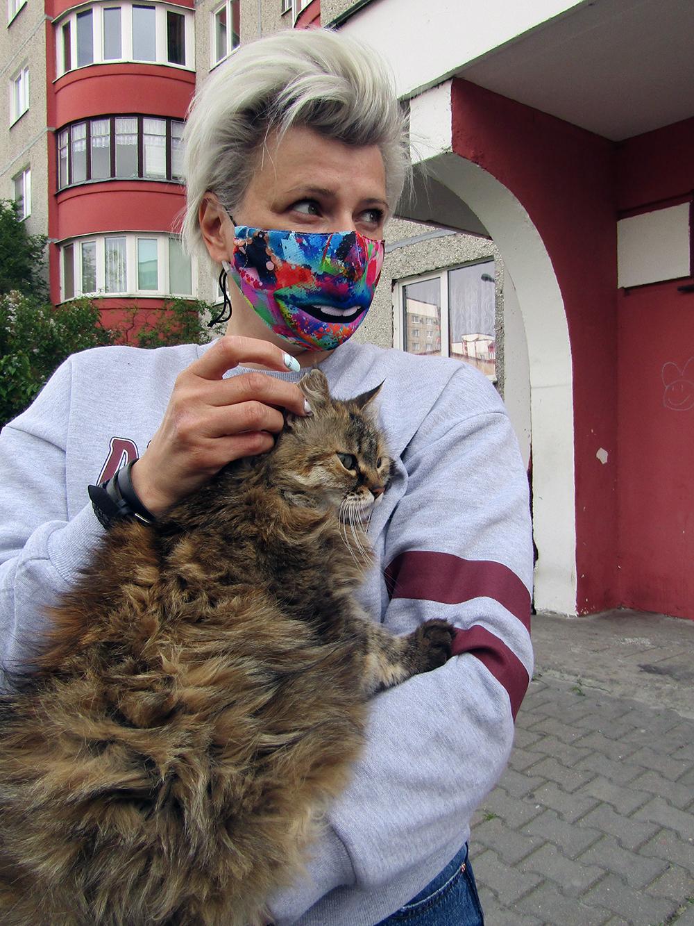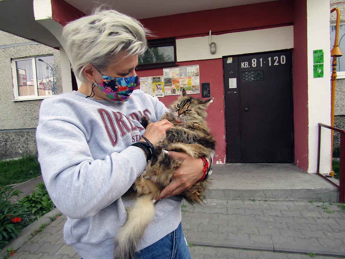 09.10.2020 20:29 Волонтер Наташа Смаль с обитателем одного из брестских подъездов. Фото: . Источник фото