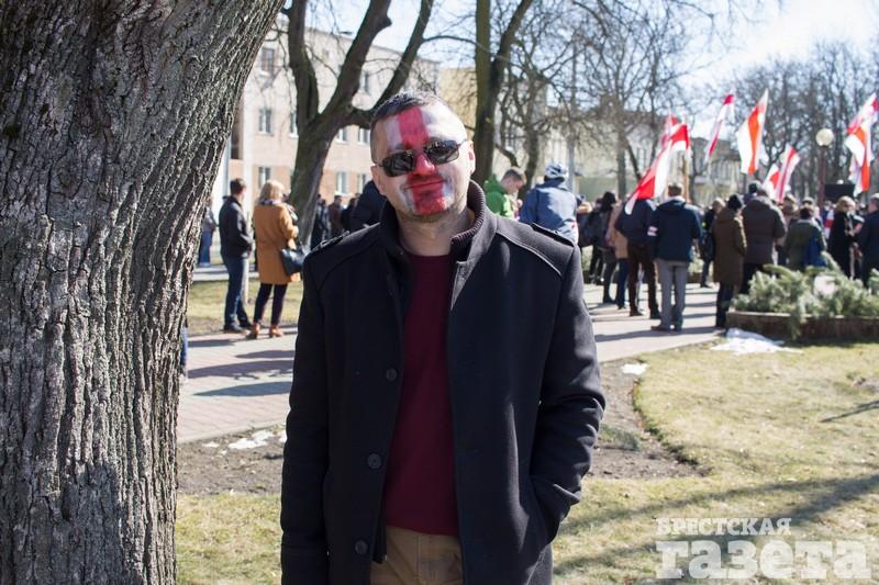 Індывідуальны прадпрымальнік Сяргей Дзень Волі святкаваў упершыню. Ён расфарбаваў твар пад бела-чырвона-белы сцяг. «Зрабіў гэта, каб адразу было ўсім зразумела, што ў мяне святочны настрой, — прызнаўся ён. — Гэта тыя сімвалы, пад якімі мы калісьці былі магутнай, вялікай краінай і нас усе паважалі».