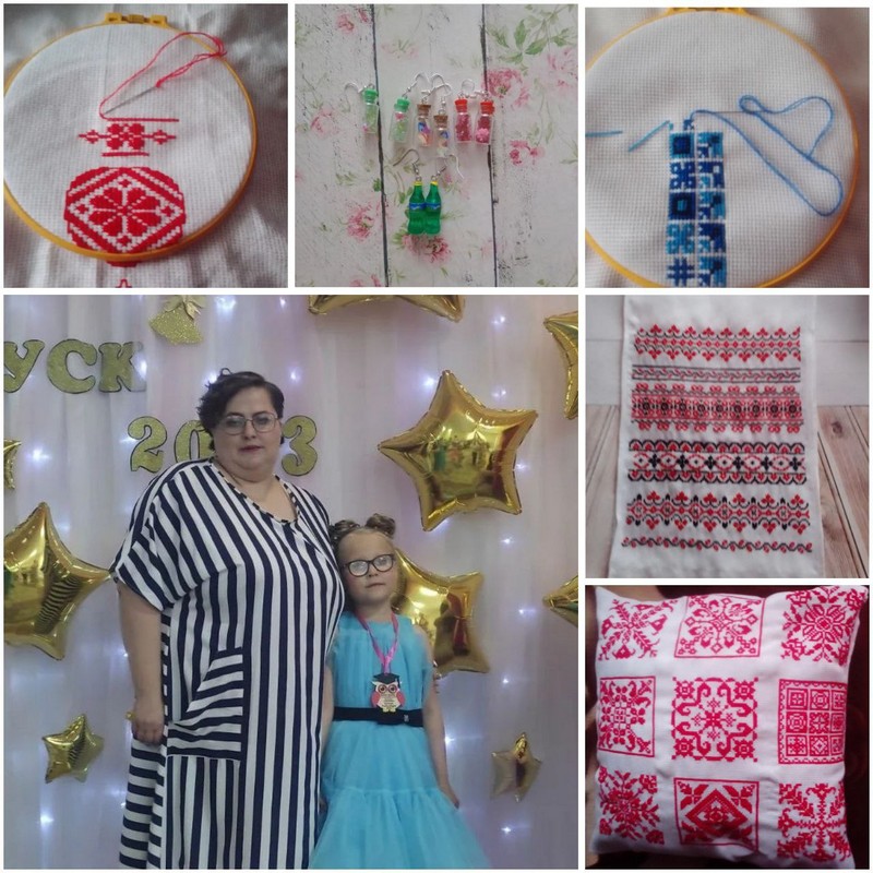 Ольга Кронда с дочкой и ее ручные изделия. Коллаж: брестская «Вясна»