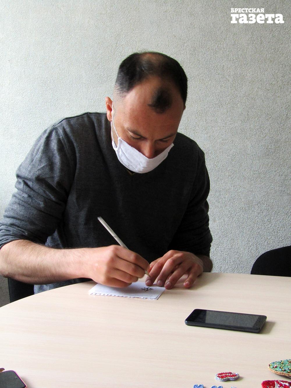 Рассказывая, Дмитрий рисует на листе бумаги.