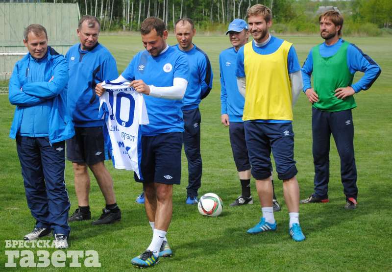 На базу в Красный Двор во вторник приехали более 30 болельщиков. Футболисты прервали тренировку. О подробностях вручения формы и интервью с некоторыми участниками церемонии читайте в бумажной версии «Брестской газеты», которая выйдет в свет в четверг 14 мая.