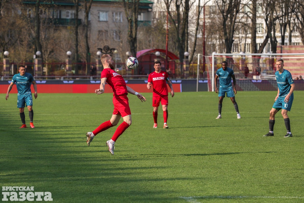 Брестчане открыли счет уже на первой минуте, забив один из самых быстрых голов этого чемпионата. Денис Лаптев ворвался в штрафную и пробил в голкипера, но спустя несколько секунд в доигровке эпизода головой переправил мяч в сетку.