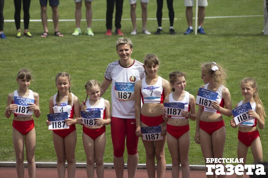 Юлия Нестеренко пробежала 31 мая символическую стометровку с юными спортсменками, воспитанницами Брестской СДЮШОР, на ОСК «Брестский».